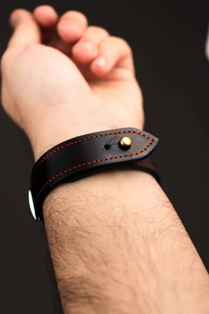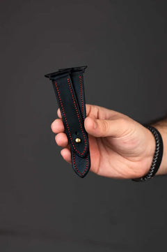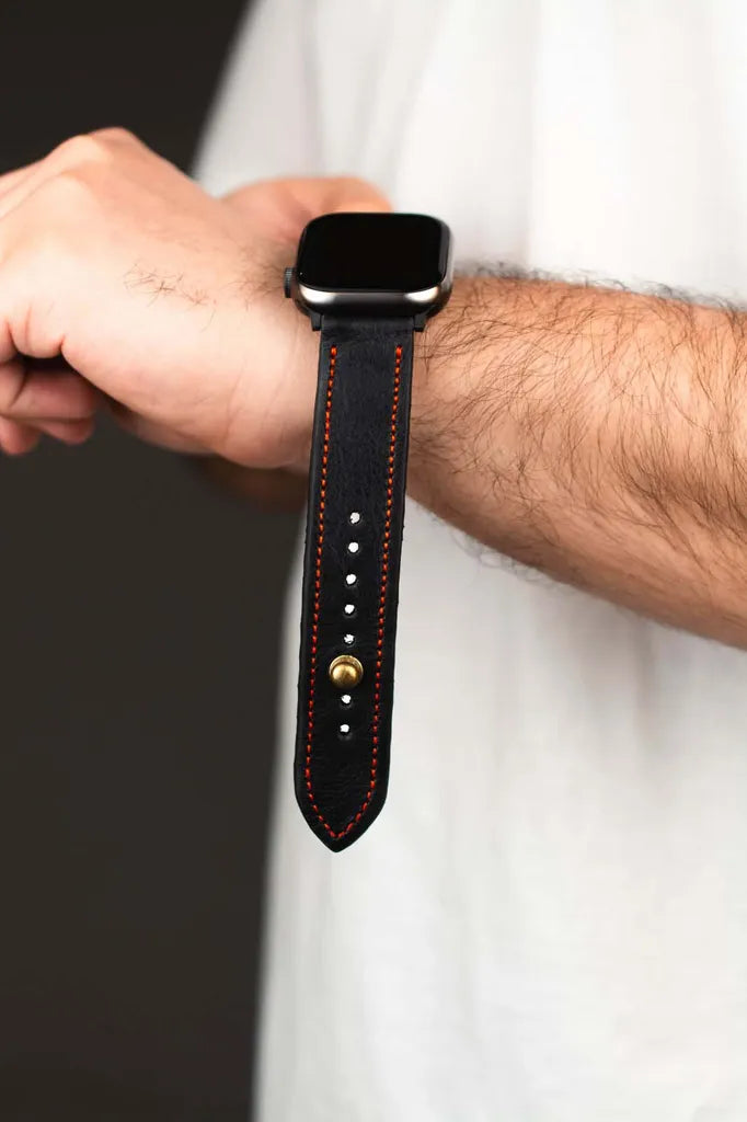 Black/Red Leather Apple Watch Strap - Exclusive Collection - The Stellar